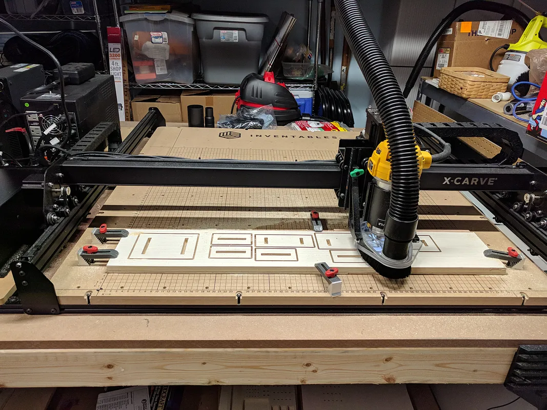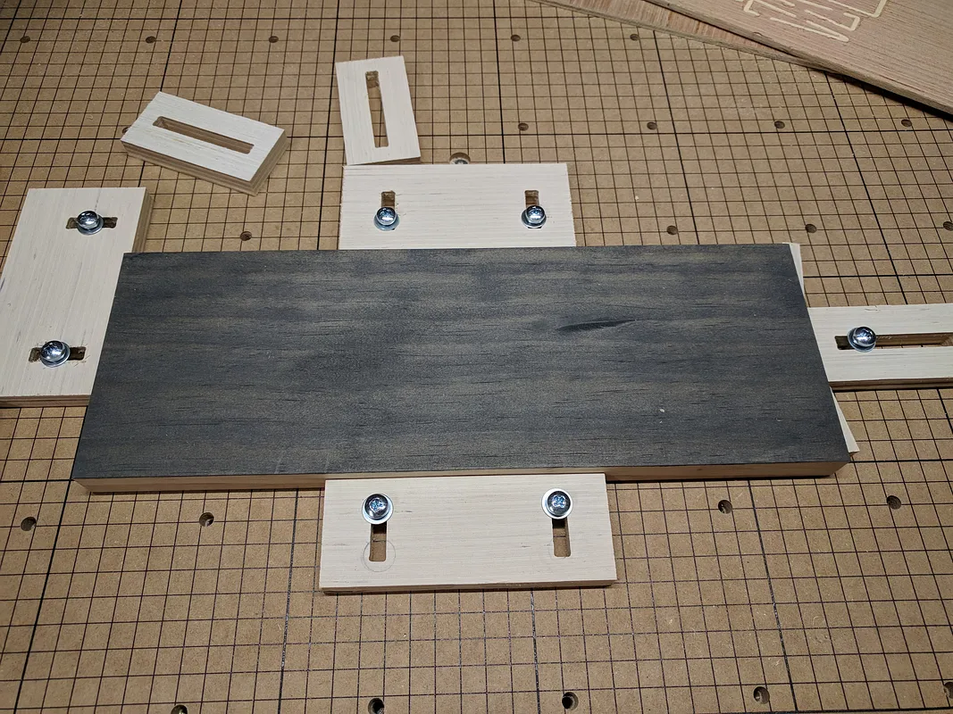These are the same as Warren Downes project, just adjusted to fit a scrap piece of plywood (5in x 29in x .5in). These clamps hold firm, allowing the stock vac shoe to be all the way down on the project without having to worry about height. Also have pictures of the screws and washers used from L.