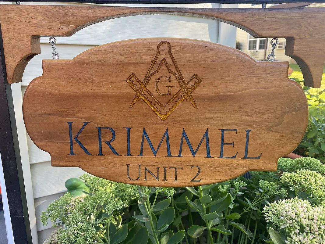 Address Sign with a Masonic emblem. I filled the negative space with colored epoxy.