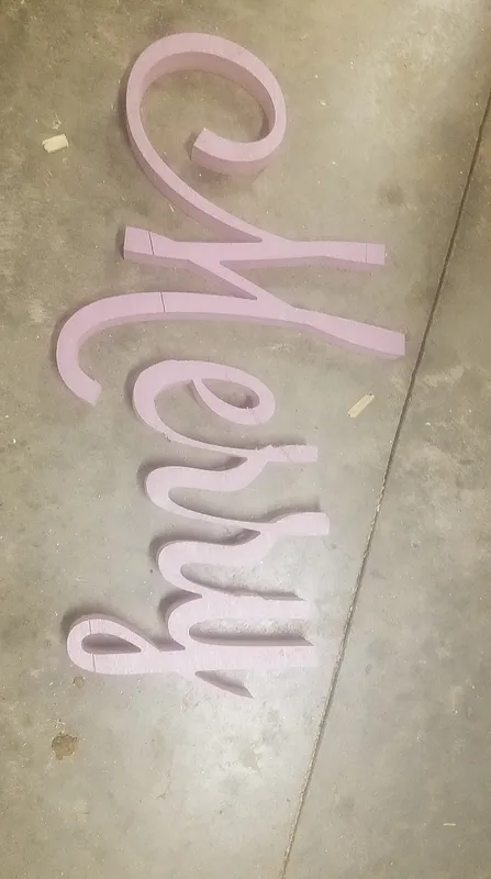 Merry Christmas letters cut from foam insualtion found at any hardware store 1/8 end mill with 1.5 inch cutting surface. Rotozip bits work good.