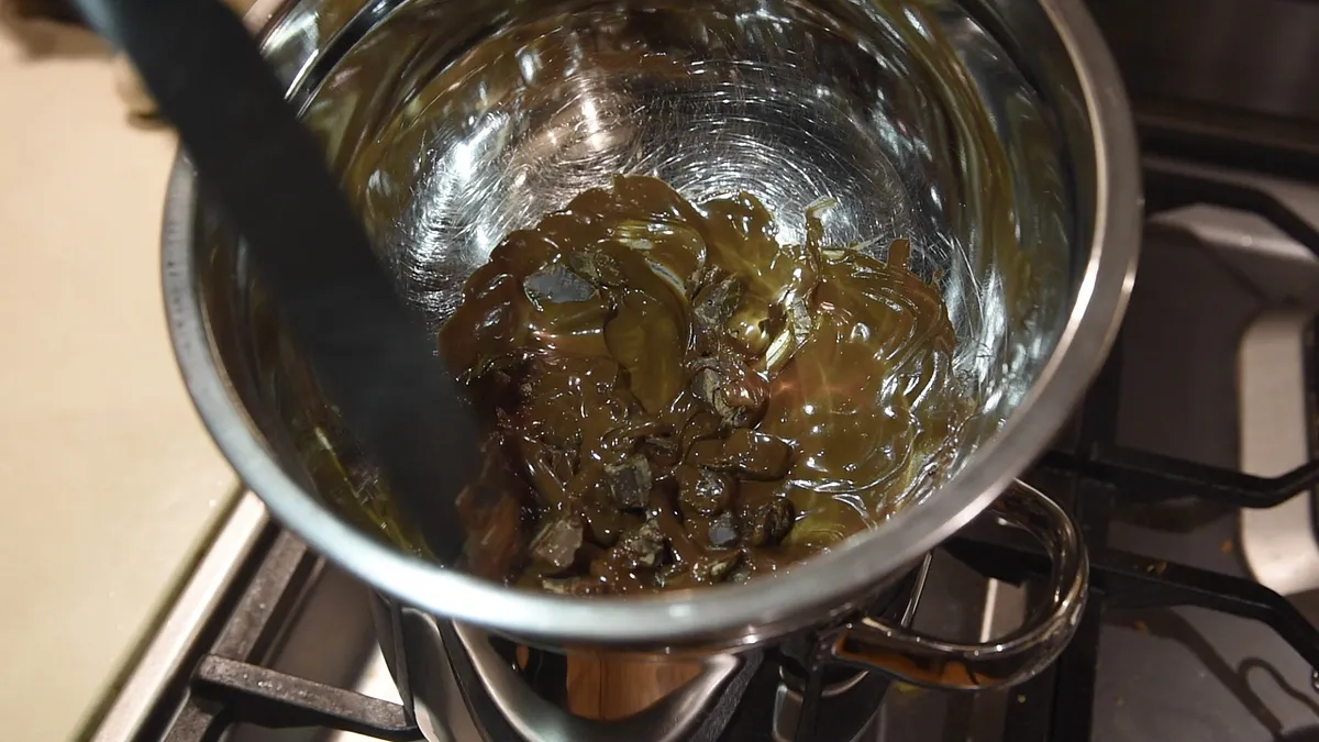 Use a double bowl technique to melt the chocolate and pour it into the mold.