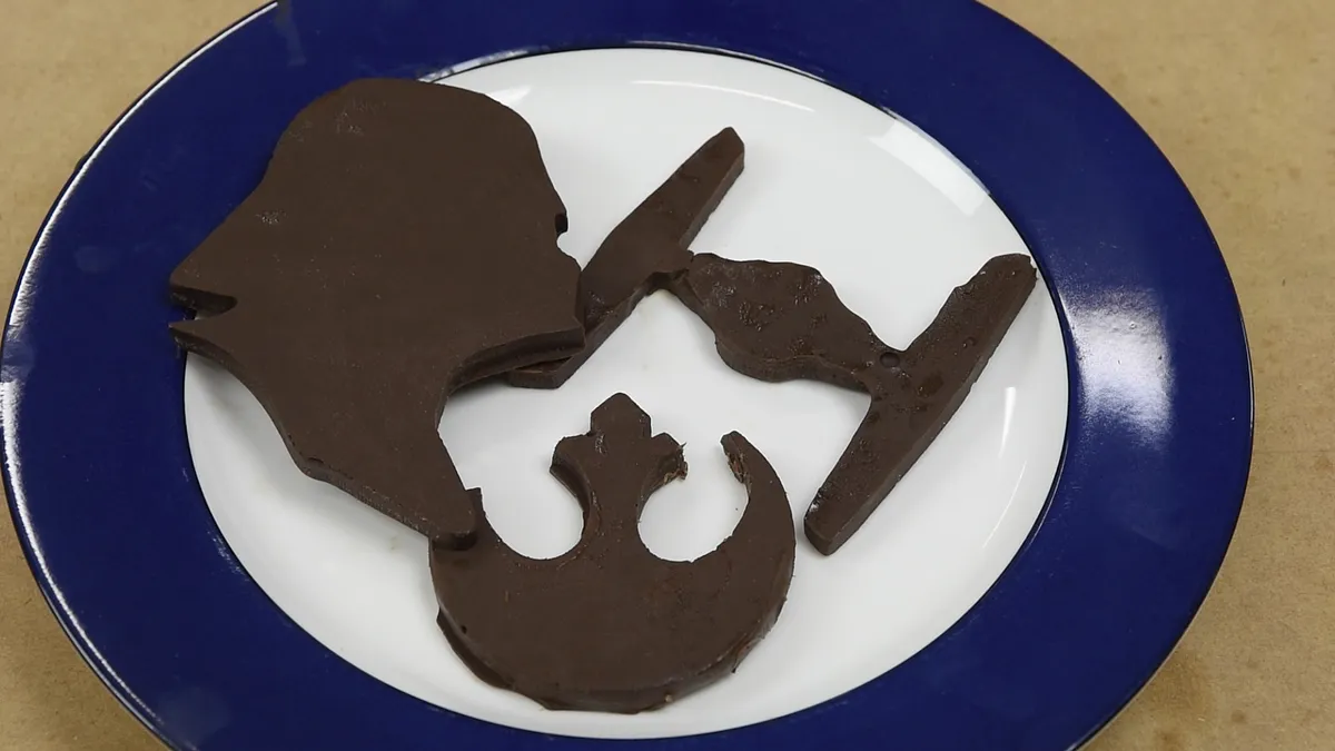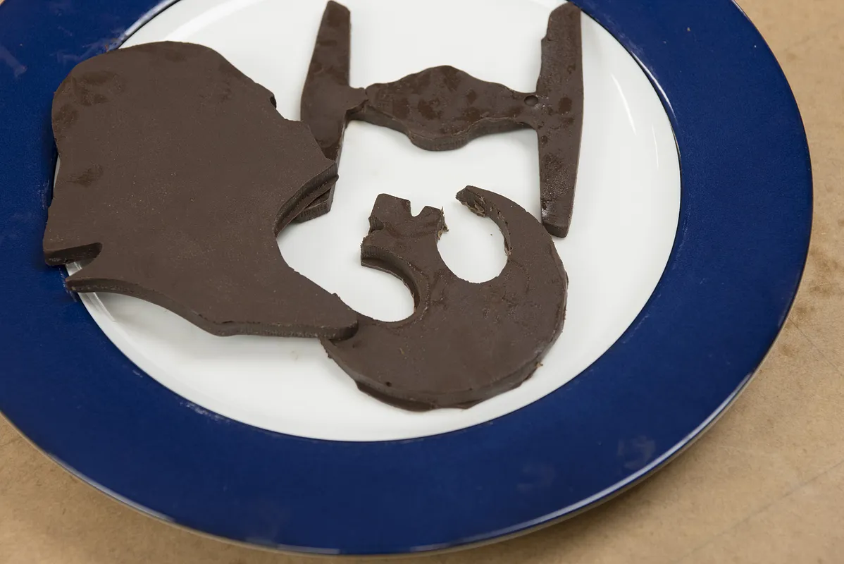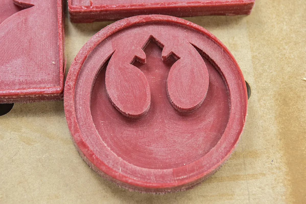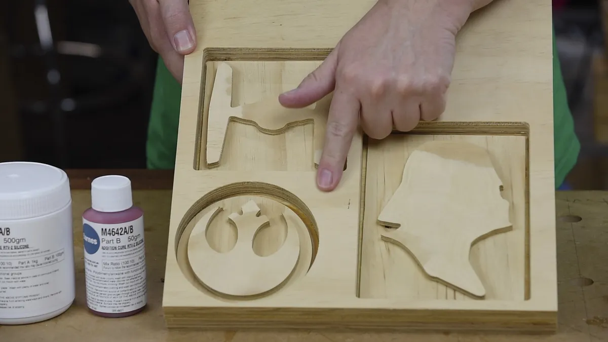 I’ve got a Tie Fighter The Rebels logo and Darth Vader’s profile it did a pretty good job of it the edges are nice and smooth so the next thing we are going to do is I’ve got some food grade silicone this comes in 2 parts you typically get a part A and a Part B and then you mix them together and a chemical reaction goes on and then we will just pour these into the mould and let them set.