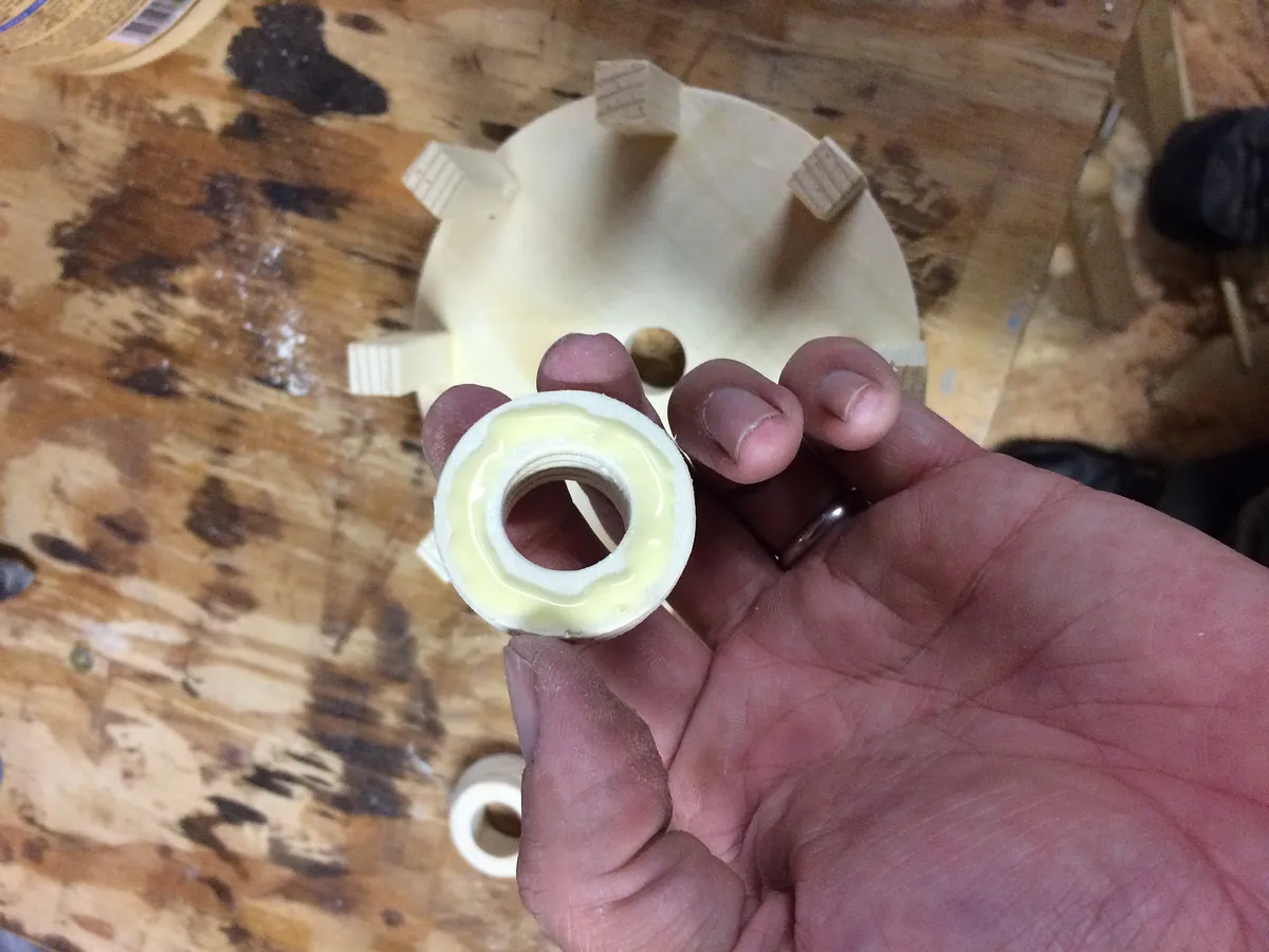 The rod couplers (Cant think of the correct name for these guys...) just need glue on the back and placed. I didn't have a 3/4" rod for this set, so i just aligned it by sight and feel. Undoubtedly the best way to get these couplers aligned correctly is to have that rod in place when gluing.
