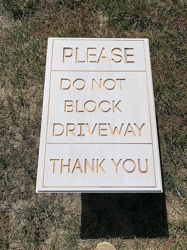 Got folks blocking your Driveway? Ask nicely... Nice Easy to Read Sign made fro Plywood and sealed and painted with exterior paint.