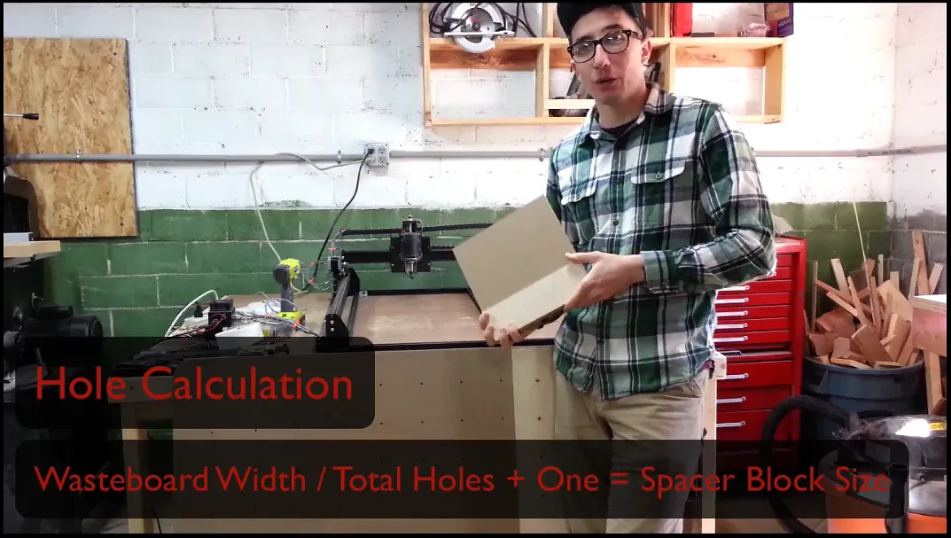 Example: If your X axis is 34" and you want 10 holes, Divide 34" by 11 = 3 1/16" Spacer Block