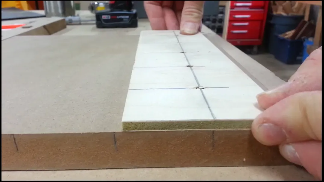 Use the spacer block to transfer evenly spaced lines onto your drill template.