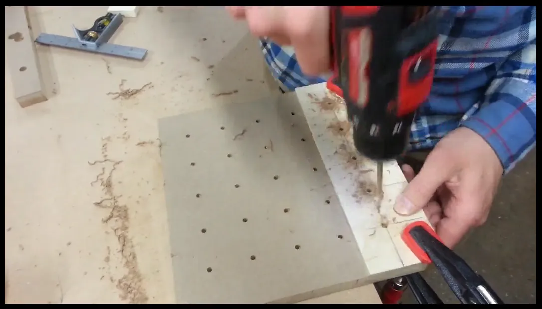 Clamp the drill template to the wasteboard being sure to alight the centerline on the drill template with lines drawn on both sides of the wasteboards y-axis.