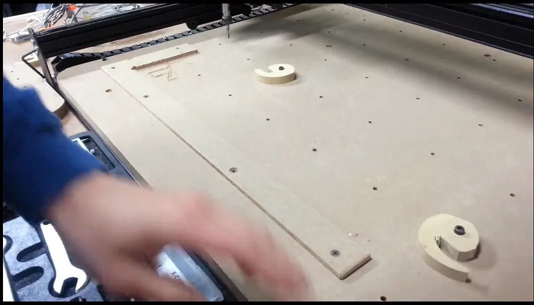 The 3/4" MDF will hit the V-wheels on the Y axis if it sits directly underneath them so ensure it is clear of the Y axis before getting final measurements.