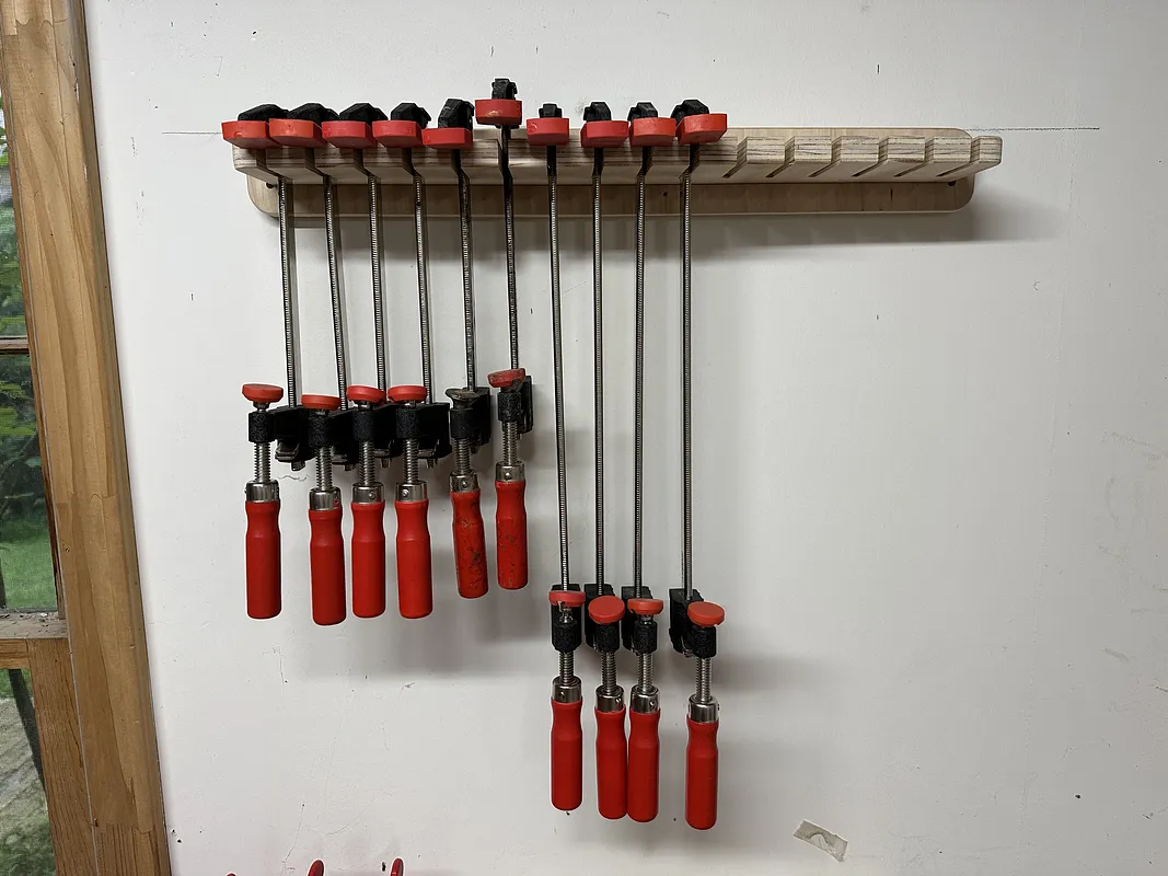 F Style clamp rack capable of holding 14 claps.