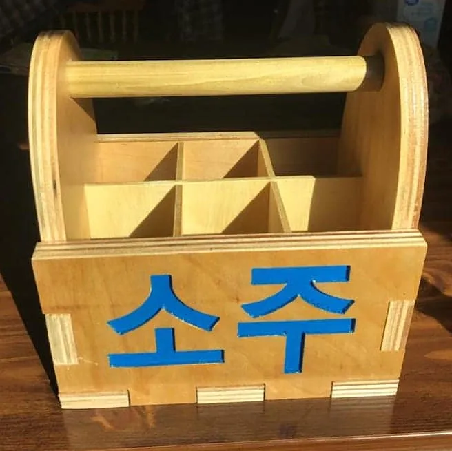 This is a quick six bottle tote sized to hold 12 oz (355 ml) bottles. This is a great gift to make for a for a birthday or Christmas present. One side says Beer and the other Soju in Korean but you can customize it.