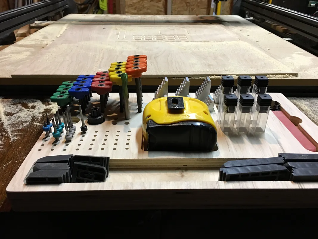 Tried to make this but your tabs are was to shallow. If your plywood is off a little it the cutouts will interfere with the bit. My project ruined at the point of the tap measure cut. The lug kicked out, hit the bit at pulled my wood from the clams.