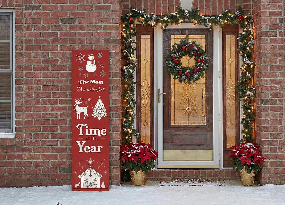 Welcome guests to your home with this 4-foot vertical holiday sign. This design combines playful winter elements with the traditional story of Christmas, making it a perfect all-encompassing decoration for your front porch or entryway.