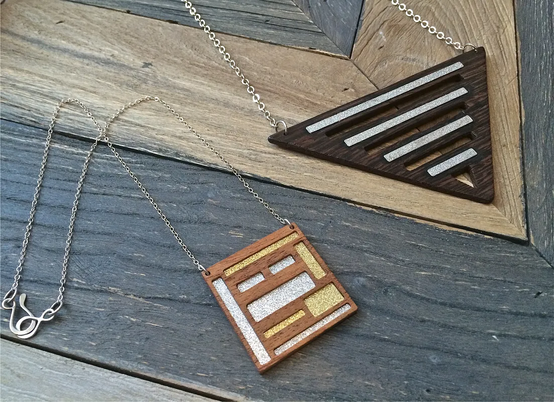 Loop 2 jump rings through the holes you drilled and attach your chain. Choose any material, color and length you'd like. I went with sterling silver and kept the triangle necklace long and the square necklace short.